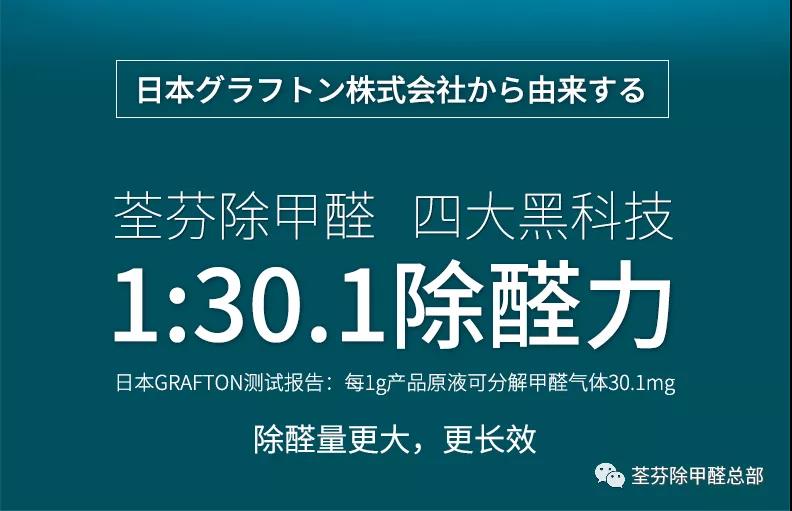 氨基高分子聚合物的生產(chǎn)合成技術(shù)是日本GRAFTON株式會社的科技專利,2013年由我們引進中國,“荃芬”品牌由此誕生。這種產(chǎn)品不同于市面常見的、身為短期除甲醛代表的光觸媒、生物媒等等媒,氨基高分子聚合物的效果完全不依賴(紫外線)光、熱,在我們自然生活條件下與甲醛發(fā)生化學(xué)反應(yīng)(非物理吸附),從而將甲醛徹底分解,1g可以反應(yīng)掉30.1mg的甲醛,除醛力屬于爆表級。